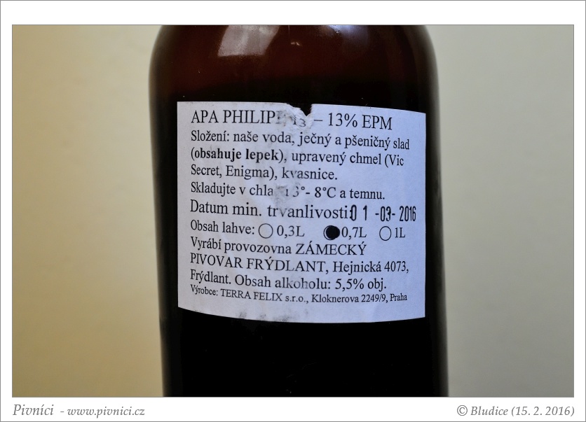 … Frýdlant a dnes tomu nebude jinak. Uvařil APA Philipp, třináctku s australskými chmely, trochu složením připomíná …