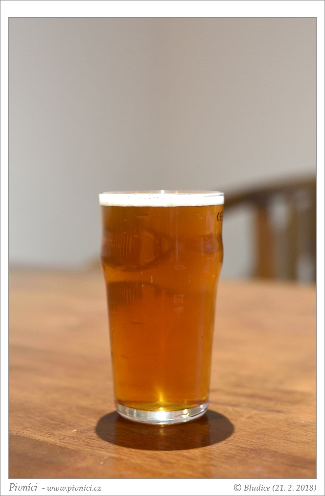 Zlatá barva, téměř čiré. Pěkná nižší světlá pěna, dobře drží, slušně kroužkuje.Vůně (2,5 - lehce nadprůměr):