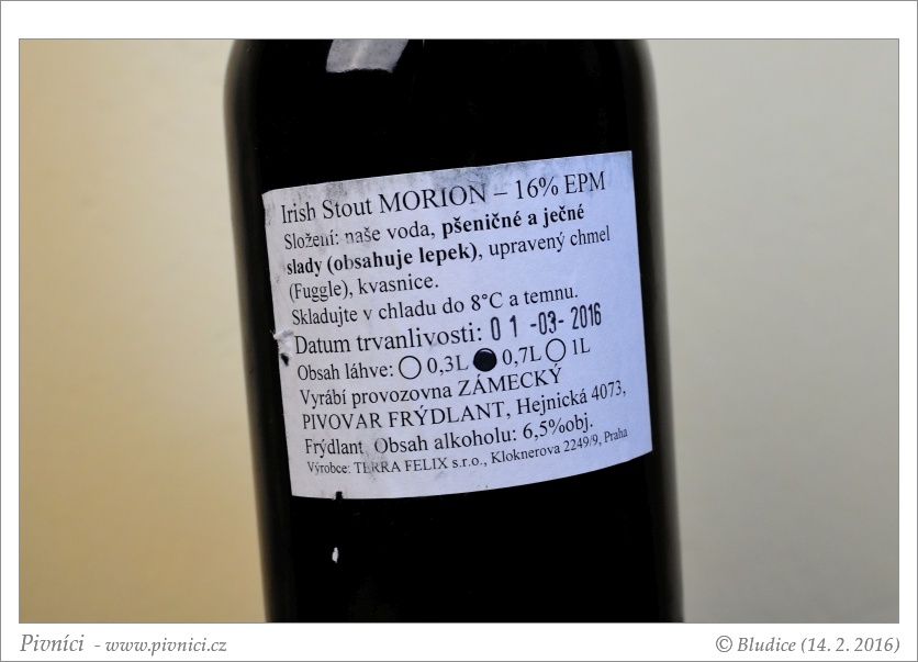 Výrazný, hodně pražený stout. Na mě až trochu moc, ale i tak se pije velmi dobře.Minimální trvanlivost: 1. března 2016