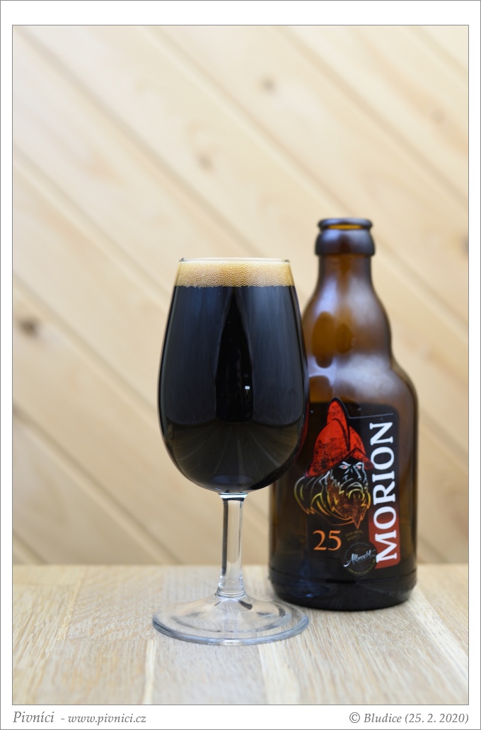 Ebenová až úplně černá barva, zdá se čiré. Slušná béžová pěna, celkem drží.Vůně (3 - dobré):