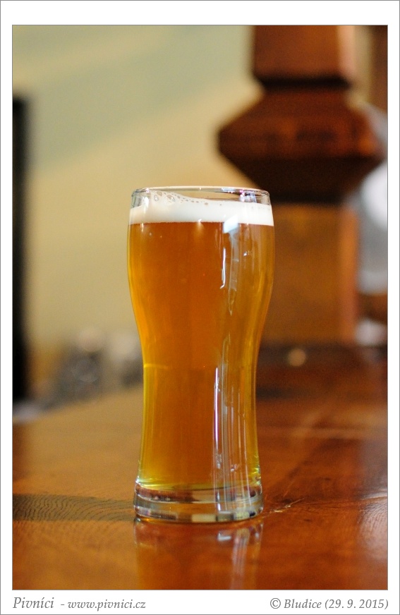 Světle zlatá barva, velmi lehce zakalené, pěkná bílá pěna, dobře drží, slušně kroužkuje.Vůně (3,5 - velmi dobré):