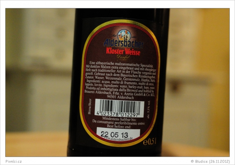 Barva hnědá, lehce zakalené. Pěkná hustá stabilní pěna světle okrové barvy.Vůně (3 - dobré):