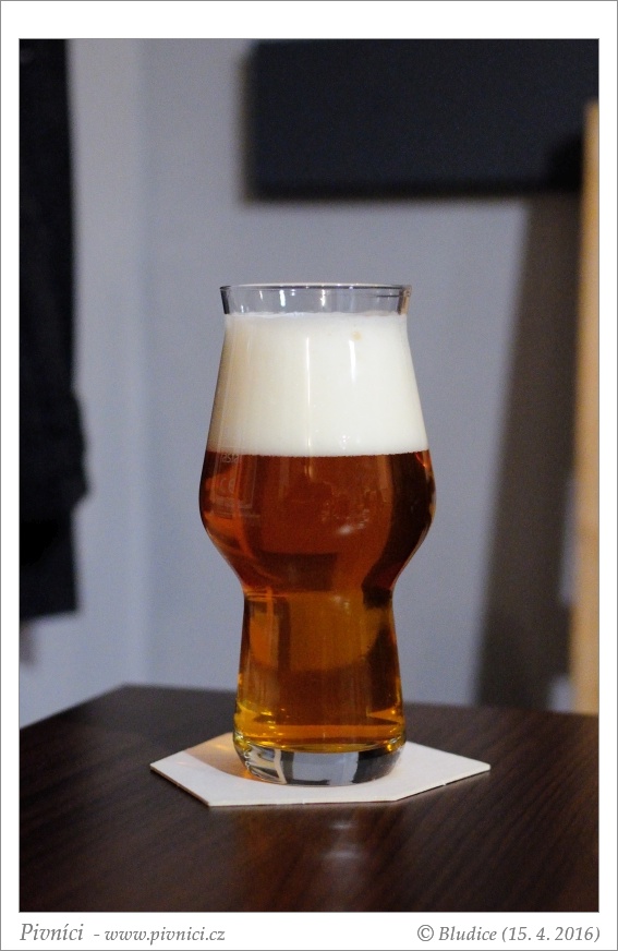 Měděná barva, téměř čiré, pěkná světlá pěna dobře drží.Vůně (4,5 - úchvatné):