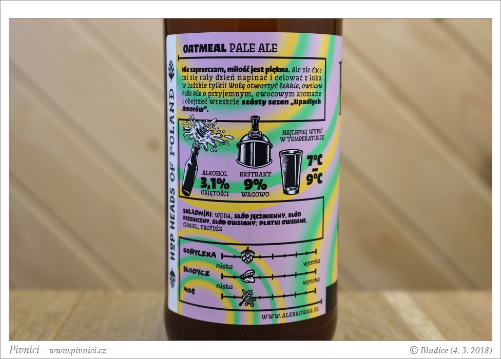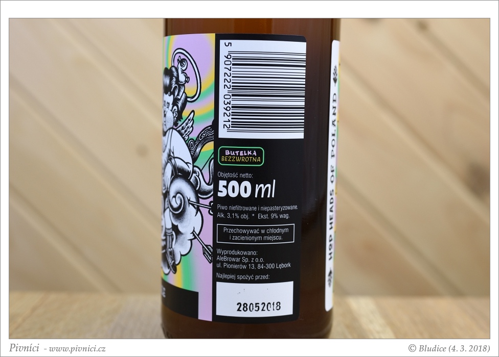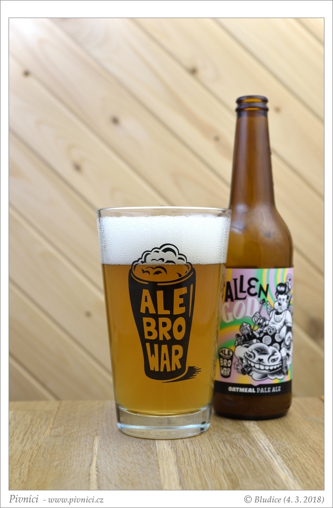 Světle zlatá barva, lehce až středně zakalené. Slušná světlá pěna, celkem drží.Vůně (3,5 - velmi dobré):