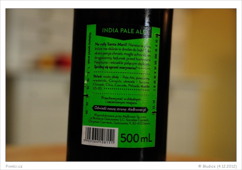Vůně sladová, toustová, kořenitá, bylinná, citrusová (grepy, citronová kůra), lehce tropického ovoce.Chuť (3,5 - velmi dobré):