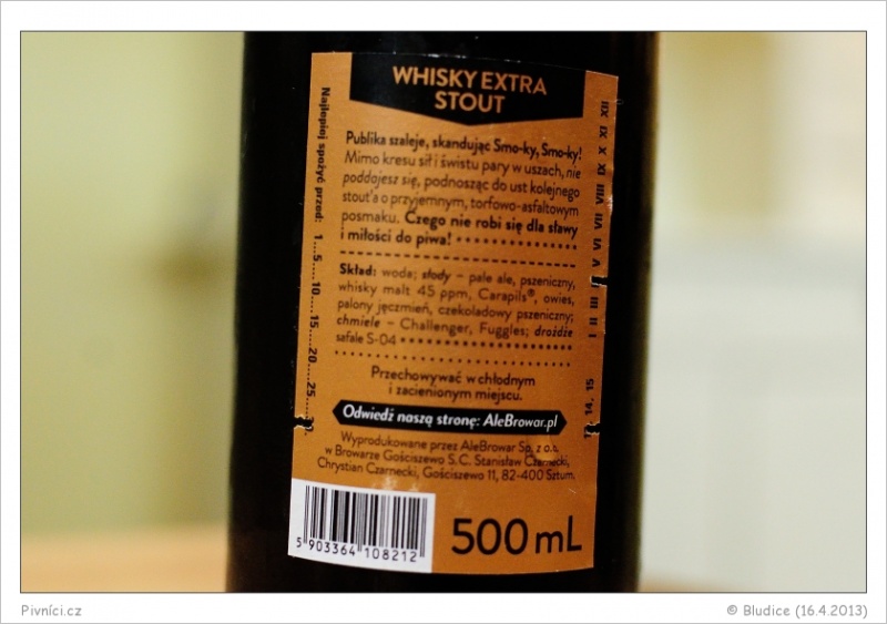 Velmi vydařený stout.Minimální trvanlivost: 30.4.2013