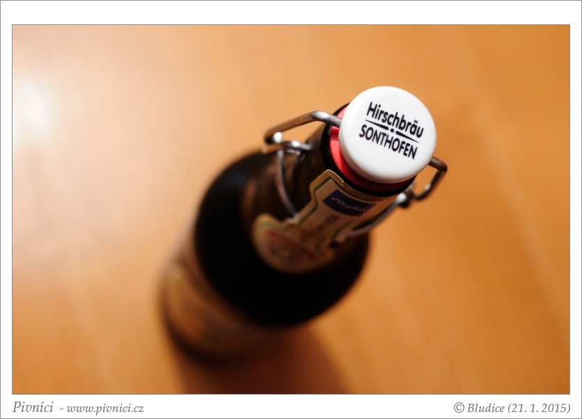 Zlatá barva, čiré, slušná bílá pěna, průměrně drží.Vůně (2,5 - lehce nadprůměr):