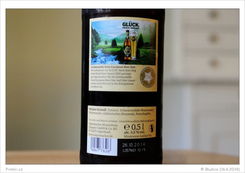 Fajn pšenice, celkem pitelná a zajímavá, není úplně bezcharakterní jako některé jiné Kristallweizeny.Vzhled (3 - dobré):