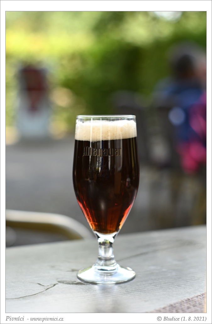 Mahagonová barva, čiré. Pěkná světlá pěna s okrovým nádechem, dobře drží.Vůně (3 - dobré):