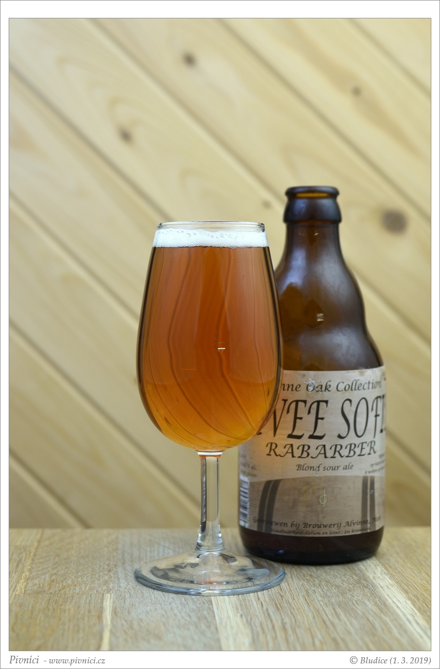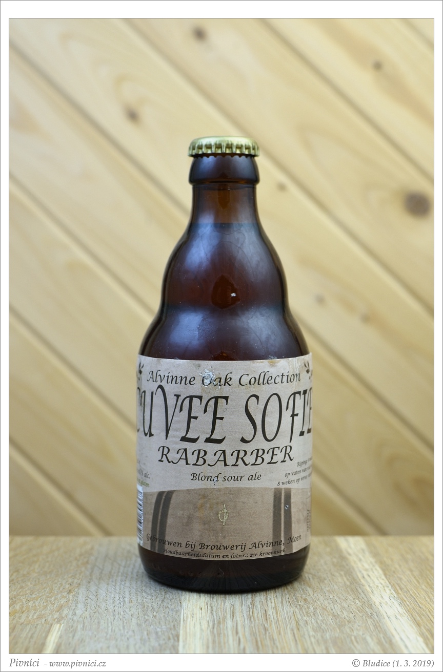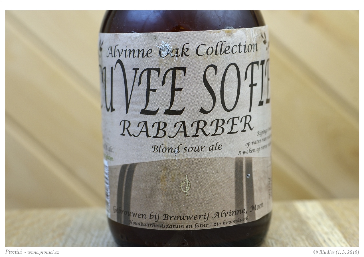 zrálo půl roku v sudech po červeném víně, osm týdnů s rebarborou