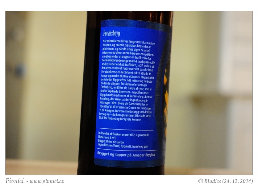Vůně toustová, karamelová, bylinně a květinově chmelová, chlebová, medová, lehce obilná.Chuť (3,5 - velmi dobré):