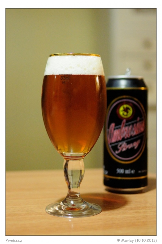 Měděná barva, čiré, průměrná bílá pěna, brzy padá.Vůně (2 - průměr):