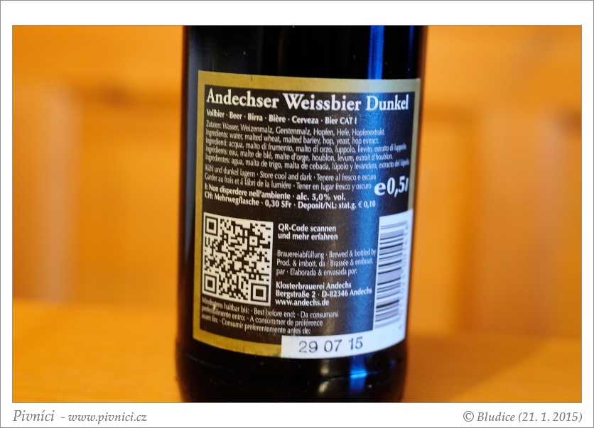 Barva tmavě hnědá, silně zakalené. Krásná hustá stabilní pěna světle béžové barvy.Vůně (4 - výborné):