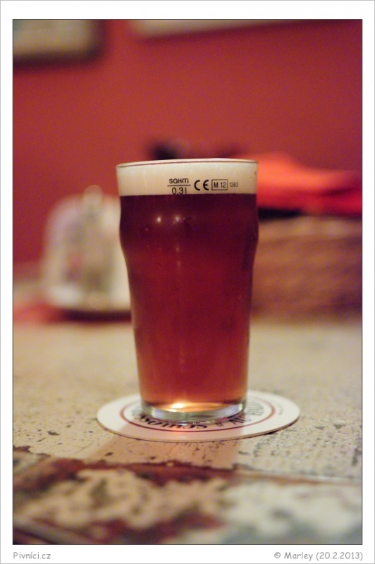 Tmavší jantarová až mahagonová barva, velmi lehce zakalené. Hezká světlá pěna, lehce kroužkuje.Vůně (4 - výborné):