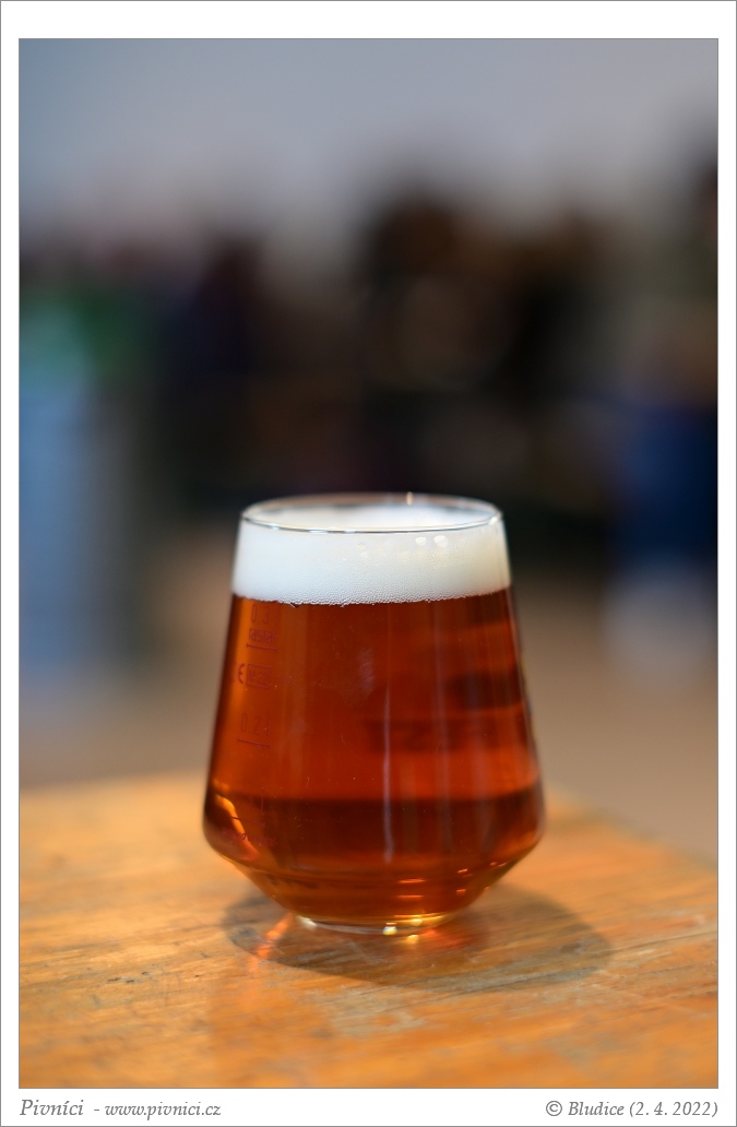 Nižší jemný říz, spíše vyšší plnost. V chuti sladší, sladové, lehce karamelové, se střední hořkostí a jemně bylinnými tóny, s nádechem broskví a malin. Doznívání je sladší, sladové, karamelové, lehce toustové, s nádechem broskví a jahod.Celkový dojem (6 - dobré pivo):