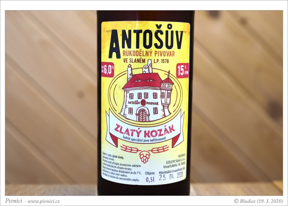 Zlatá barva, téměř čiré s trochou plovoucích kvasnic. Pěkná světlá pěna, dobře drží.Vůně (3 - dobré):