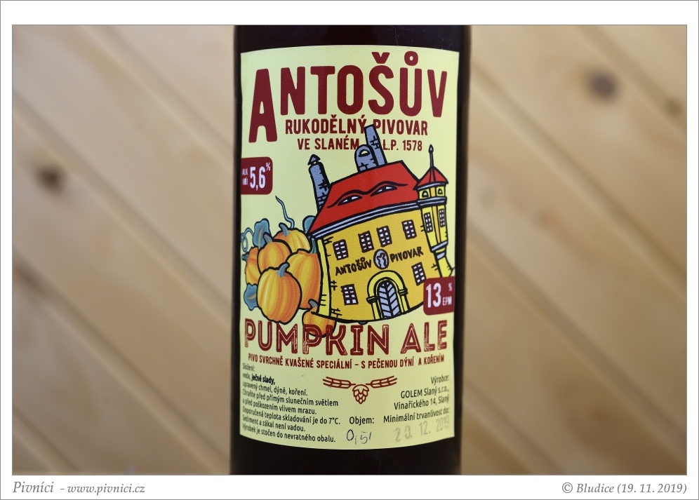Na Antoše a pumpkin ale celkem pitelné pivo, ale žádný zázrak to není.Minimální trvanlivost: 20. prosince 2019