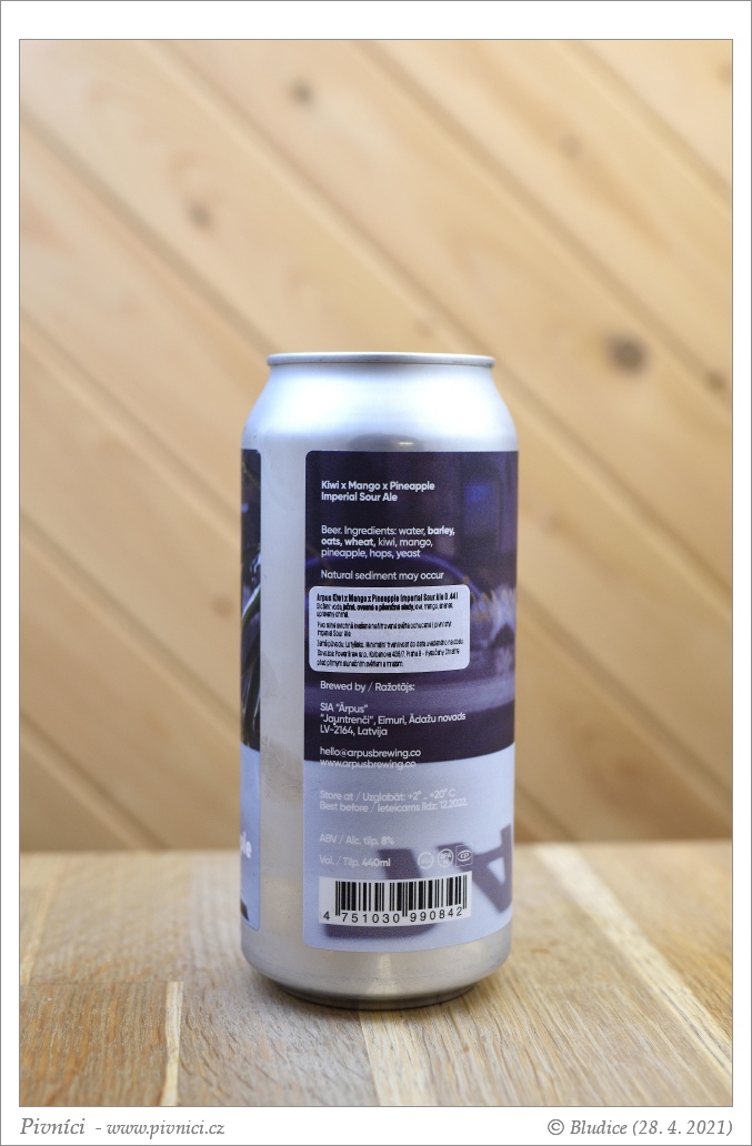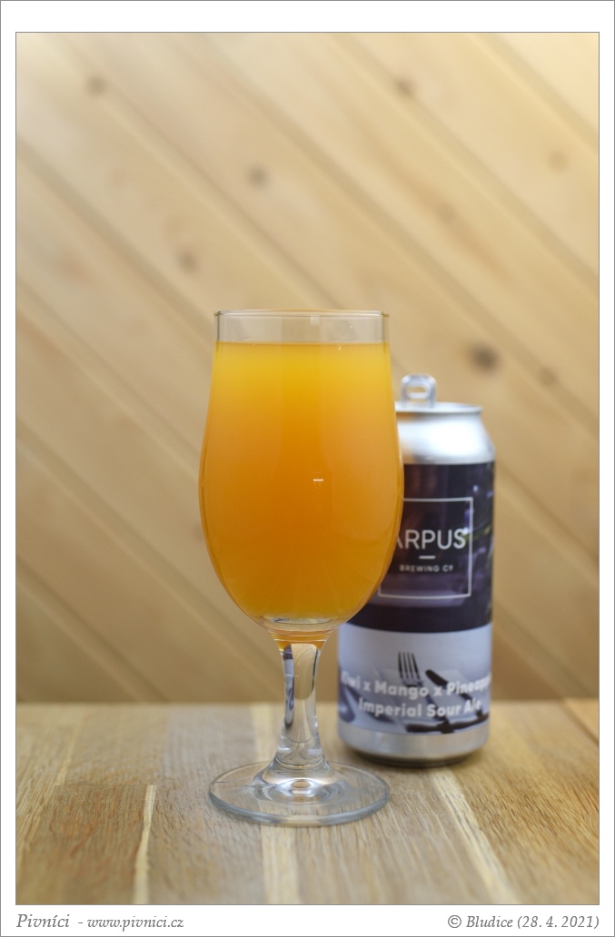 Vůně tropického ovoce (kiwi, ananas, mango), nakyslá, trochu obilná a pecičková.Chuť (4 - výborné):