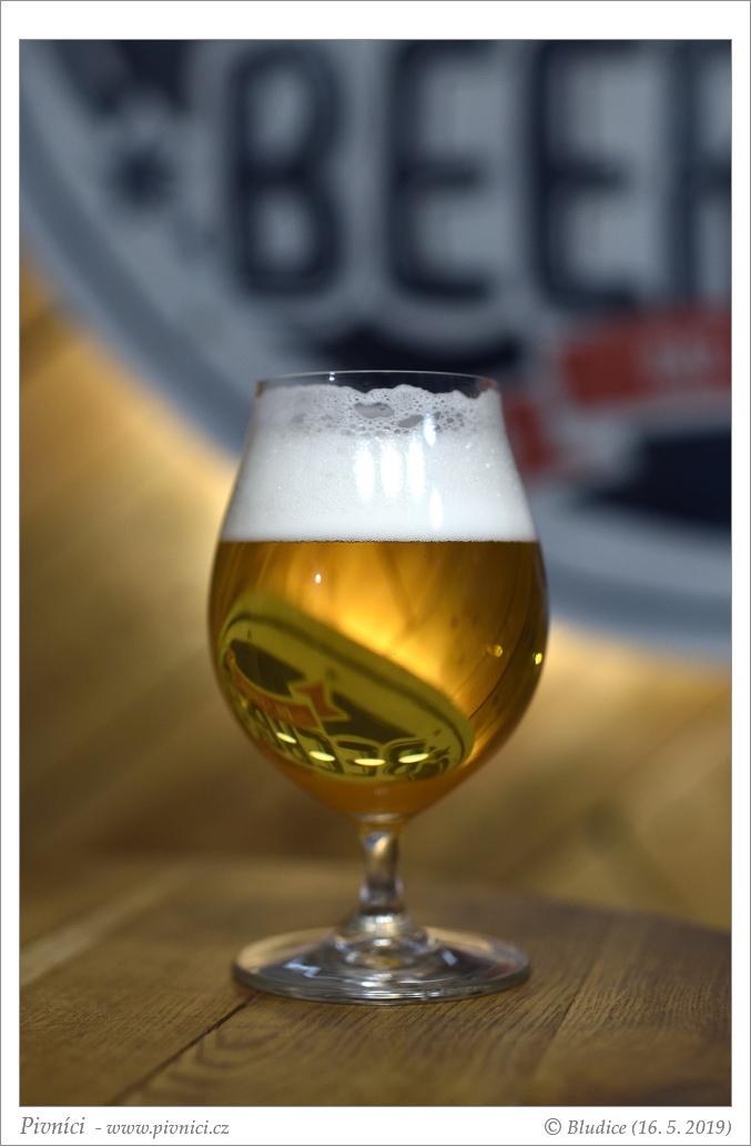 Zlatá barva, čiré. Pěkná světlá pěna, dobře drží.Vůně (3,5 - velmi dobré):