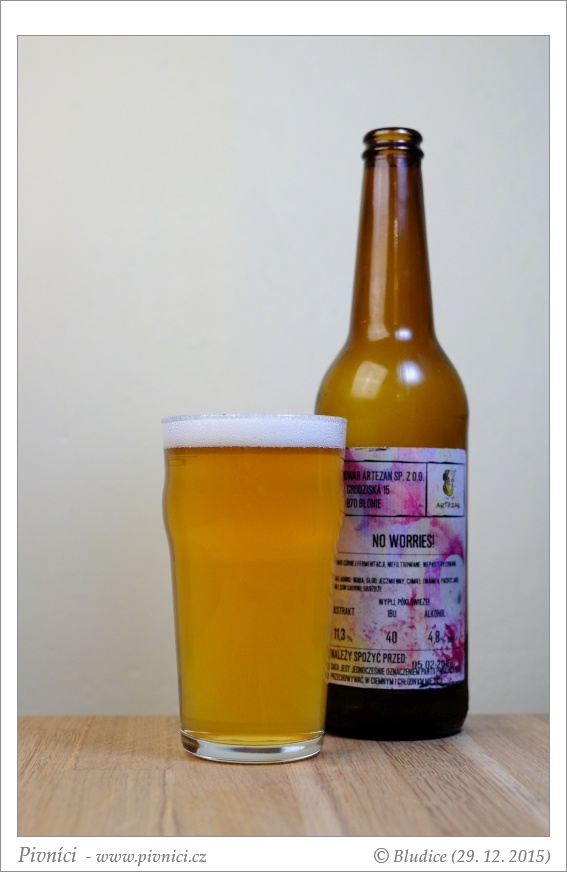 Slámová barva, velmi lehce zakalené (odpočívalo dva týdny v lednici), slušná světlá pěna, celkem drží.Vůně (4 - výborné):
