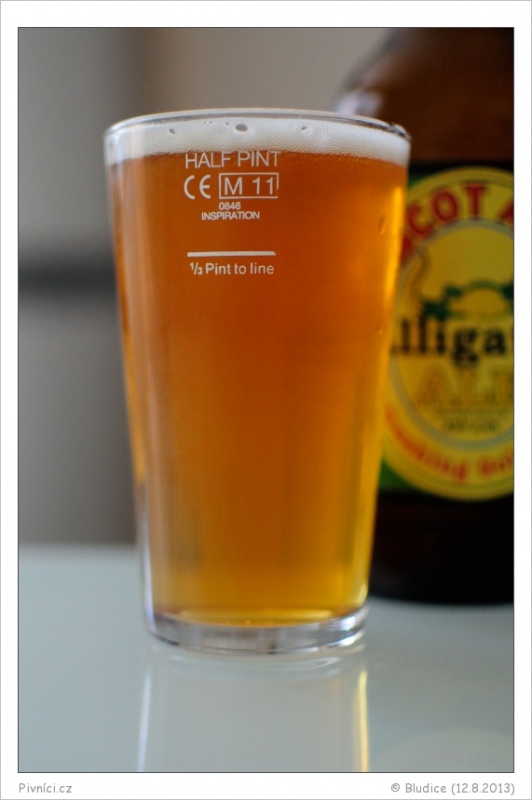 Tmavší zlatá barva, téměř čiré, slušná světlá pěna s okrovým nádechem.Vůně (3,5 - velmi dobré):
