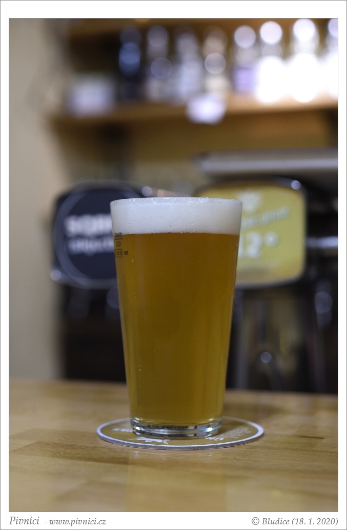 Zlatá barva, lehce až středně zakalené. Pěkná světlá pěna, dobře drží.Vůně (3,5 - velmi dobré):
