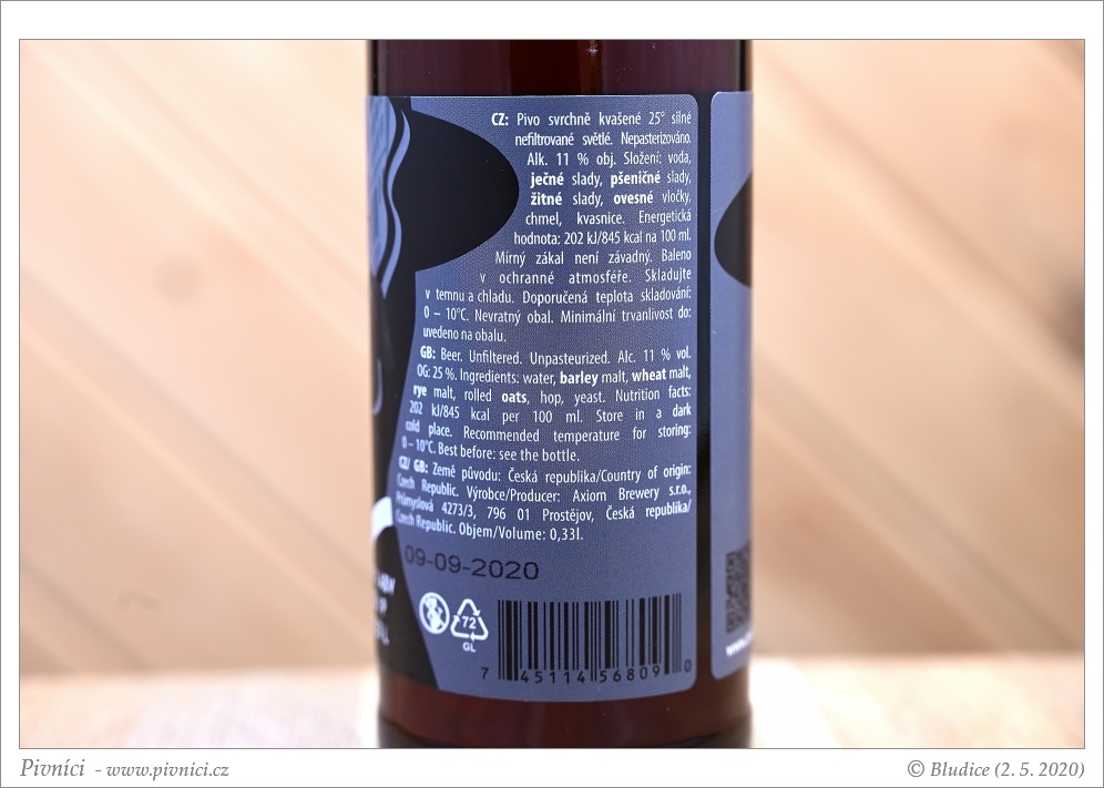Chutné barley wine, ale alkohol by chtělo trochu zjemnit.Minimální trvanlivost: 9. září 2020