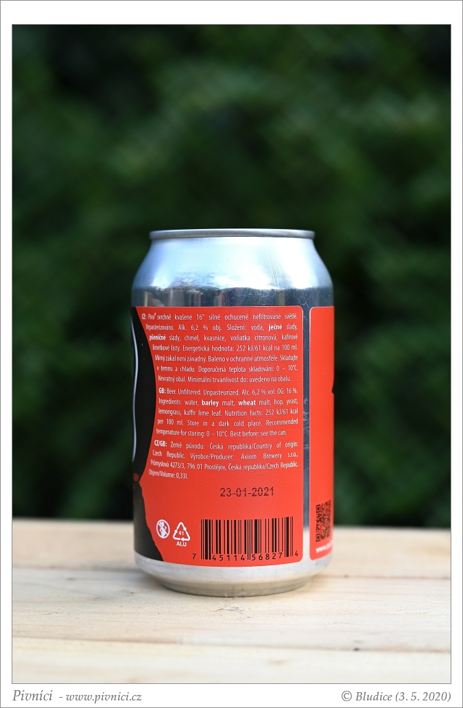Vůně sladová, citrusová (limetky, grepy), bylinná (citrónová tráva), trochu toustová a pryskyřičná.Chuť (3,5 - velmi dobré):