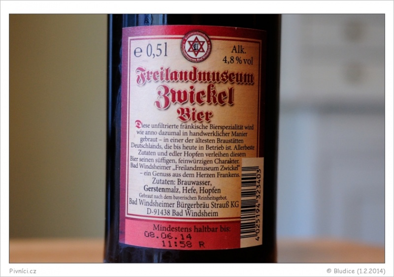 Dobře pitelný Zwickel s moc příjemným dlouhým dozníváním.Minimální trvanlivost: 8.6.2014