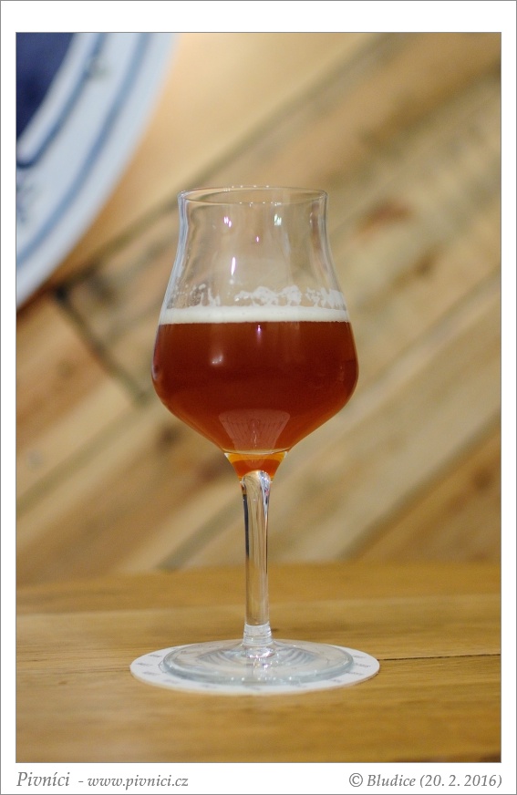 Měděná barva, lehce zakalené, slušná světlá pěna s okrovým nádechem, celkem drží.Vůně (4,5 - úchvatné):