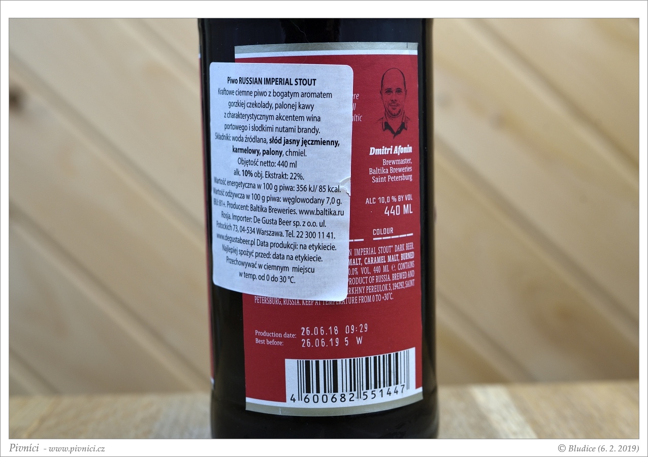Příjemný a velmi dobře se popíjející silák, spíše než klasické imperial stouty připomíná batské portery.Vzhled (3,5 - velmi dobré):