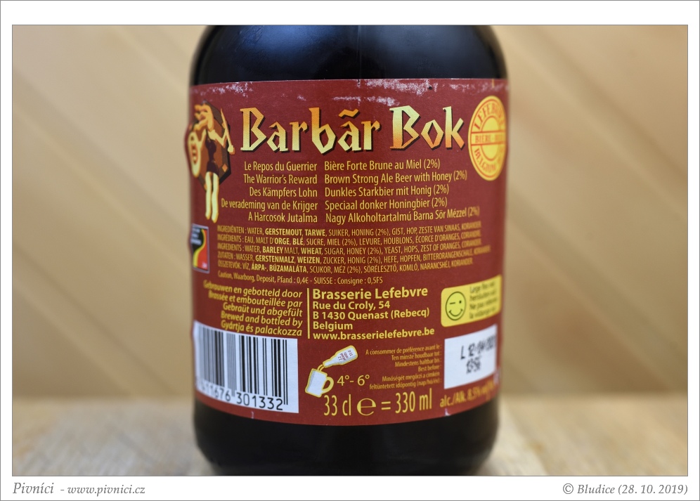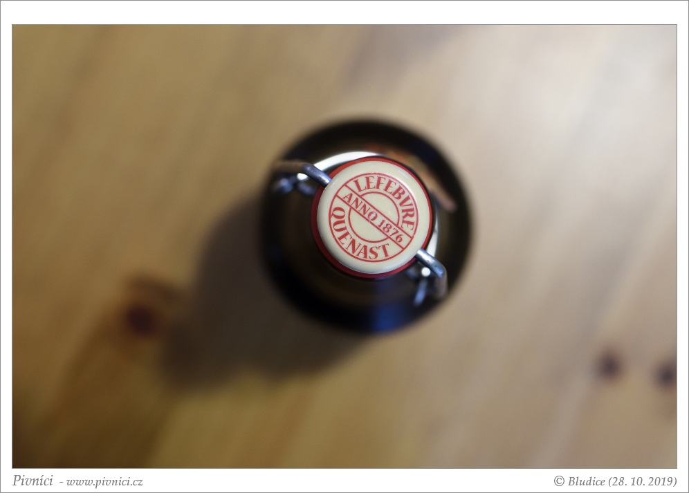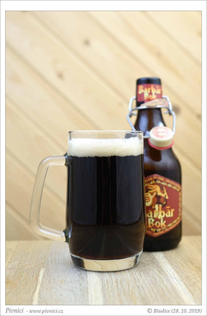 Tmavě mahagonová barva, čiré. Pěkná světlá pěna s okrovým nádechem, dobře drží.Vůně (4 - výborné):