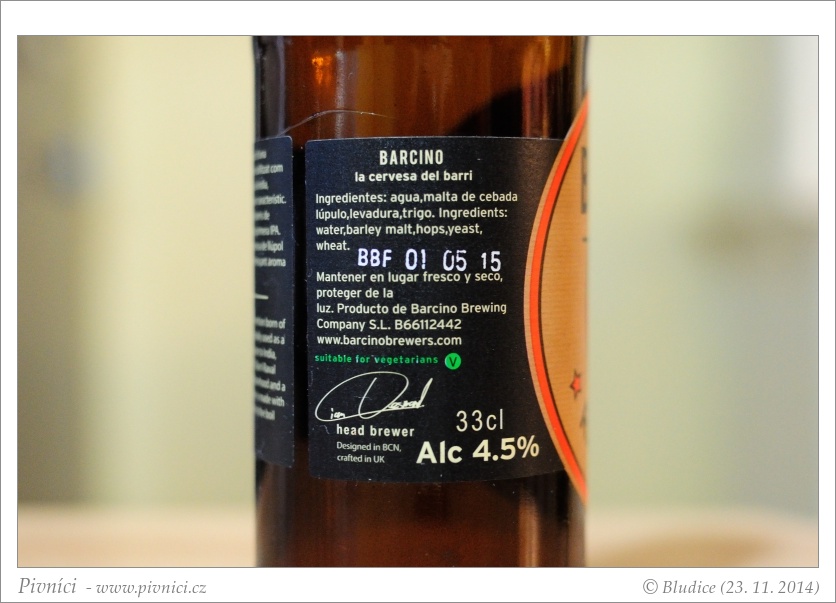 Barva světlejší zlatá, téměř čiré. Nižší průměrně stabilní pěna.Vůně (4 - výborné):