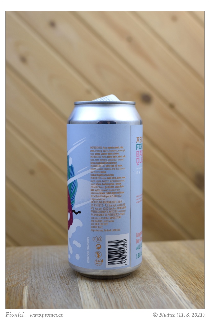 Střední říz, střední plnost. V chuti nakyslé, výrazně ovocně šťavnaté, s tóny malin a mučenky. Doznívání je jemně nakyslé, s nasládlým nádechem, malinové, s tóny mučenky a kokosu.Celkový dojem (8 - výborné pivo):