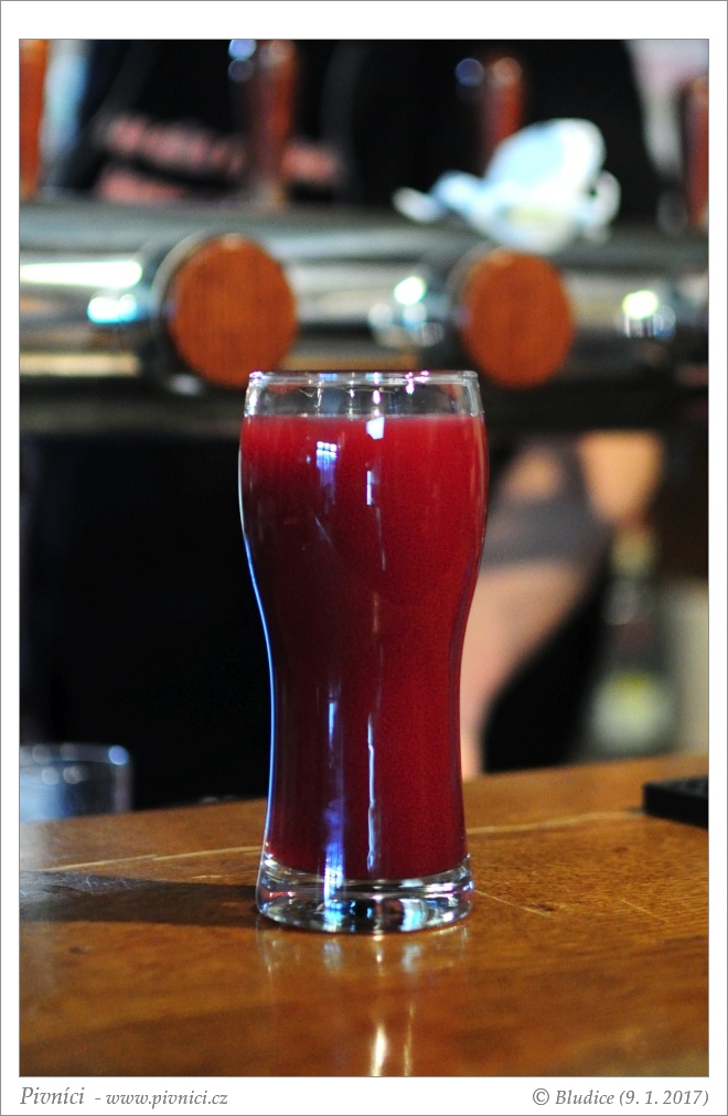 Červená až vínová barva, velmi zakalené, prakticky bez pěny.Vůně (3,5 - velmi dobré):