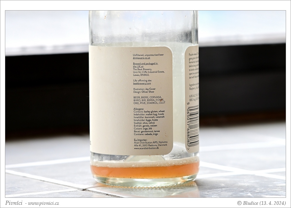 Vůně sladká, sladová, bonparová, s nádechem kefíru, červeného vína, lesních jahod.Chuť (3,5 - velmi dobré):