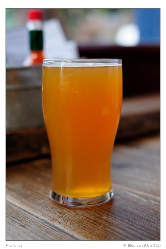 Skvěle pitelné, výrazně ovocné, moderní APA.Cena 2,5 £ za půlpintu