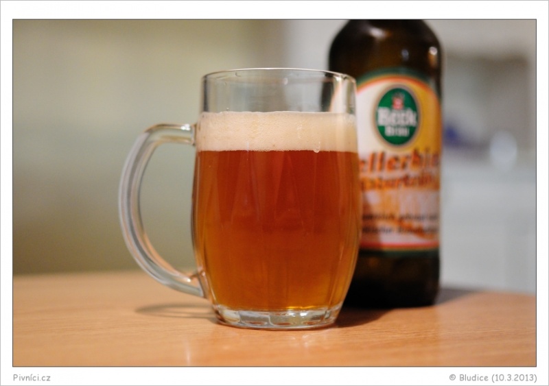 Měděná barva, středně zakalené, pěkná světlá pěna, dobře drží.Vůně (2,5 - lehce nadprůměr):