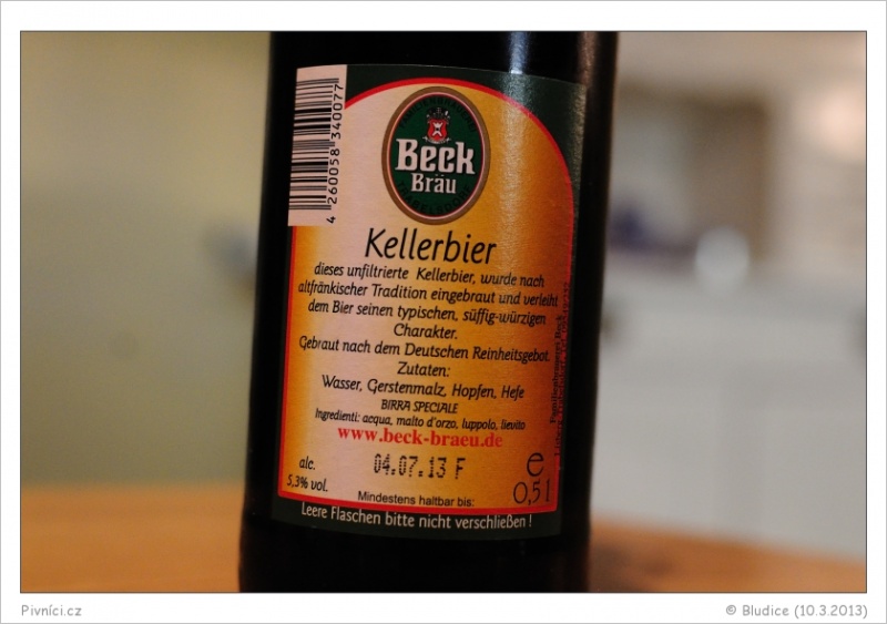 Barva zlatá, zakalené. Pěkná hustá průměrně stabilní pěna.Vůně (3 - dobré):
