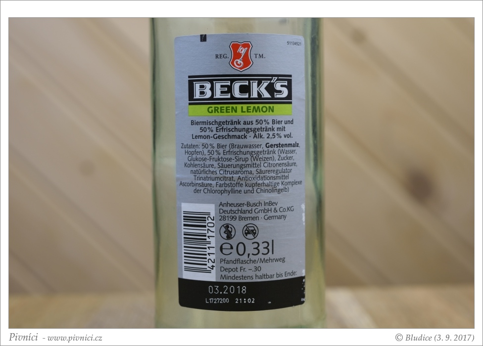 Světle zlatá barva se ze zeleným nádechem, čiré. Slušná světlá pěna, průměrně drží.Vůně (1,5 - nedobré):