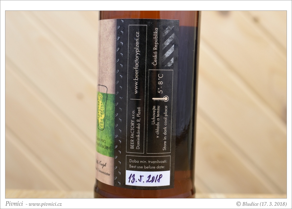Pěkně chmelené pivo, ale másla bych ubrala. Minimální trvanlivost: 13. května 2018