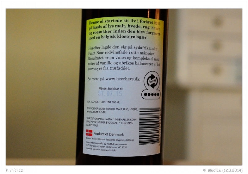 Výborné usrkávací pivo s krásným dlouhým dozníváním. Tóny červeného vína se krásně doplňují s medově sladovými tóny.Minimální trvanlivost: 31.7.2015