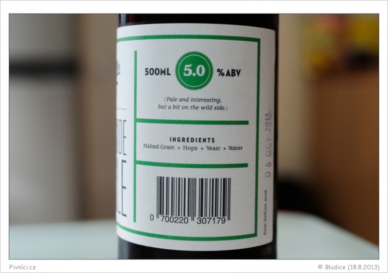 Příjemný a hezky nachmelený Pale Ale, skvěle pitelný. O něco lépe vyvážené, než várka, kterou jsme měli v pivovaru.Vzhled (3 - dobré):