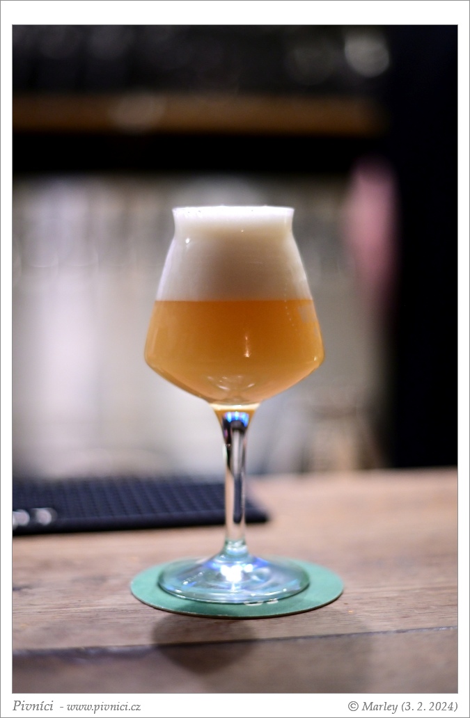 Zlatá barva, více zakalené. Pěkná světlá pěna, dobře drží.Vůně (3 - dobré):