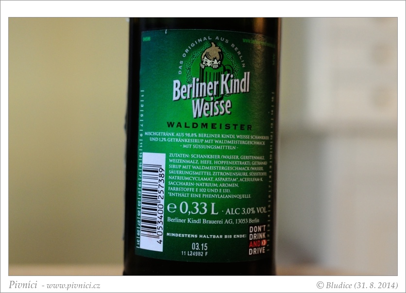 Podivné ochucené pivo, kdyby bylo méně sladké, možná by se ještě dalo pít, takto je to pro mě spíše za trest.Cena 0,89 € za 0,33 l v Getränke Hoffmann Berlin