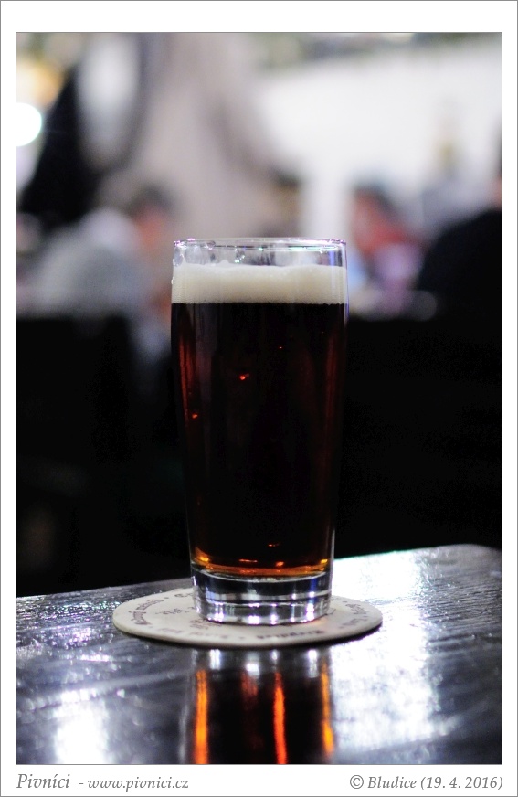 Mahagonová barva, čiré, slušná světlá pěna s okrovým nádechem, dobře drží.Vůně (1 - hnusné):
