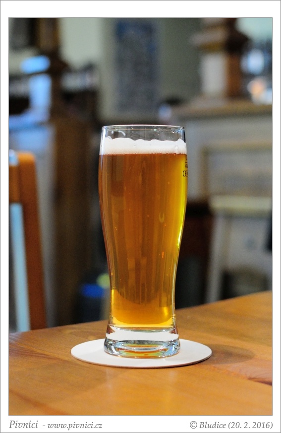 Zlatá barva, čiré, pěkná světlá pěna, dobře drží.Vůně (3,5 - velmi dobré):