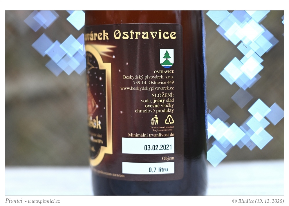 Fajn NEIPA, trochu těžší, ale pěkně chmelená. Dobře se popíjí.Minimální trvanlivost: 3. února 2021