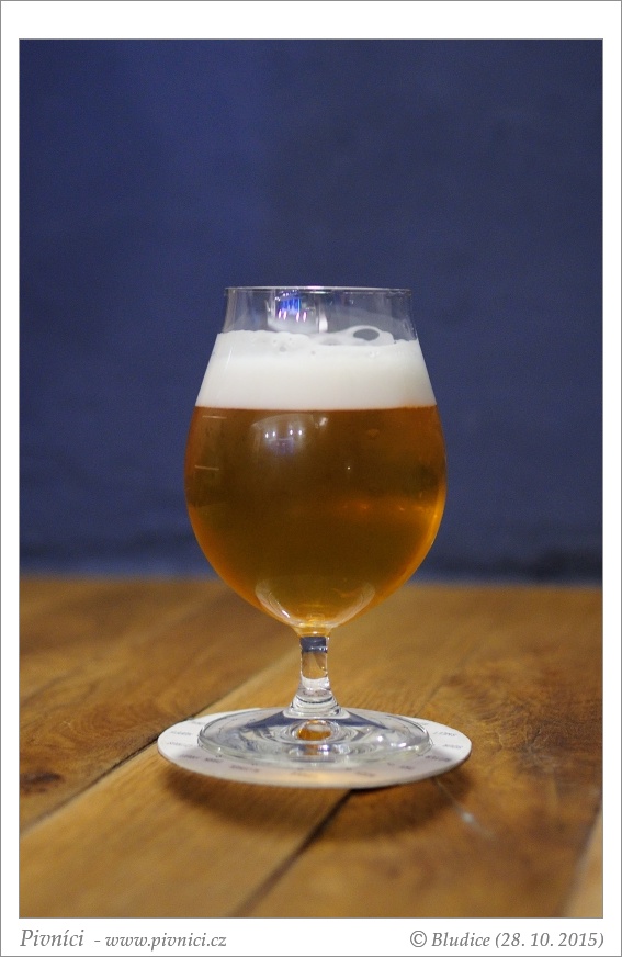 Zlatá barva, čiré, pěkná světlá pěna, dobře drží, krásně kroužkuje.Vůně (4 - výborné):