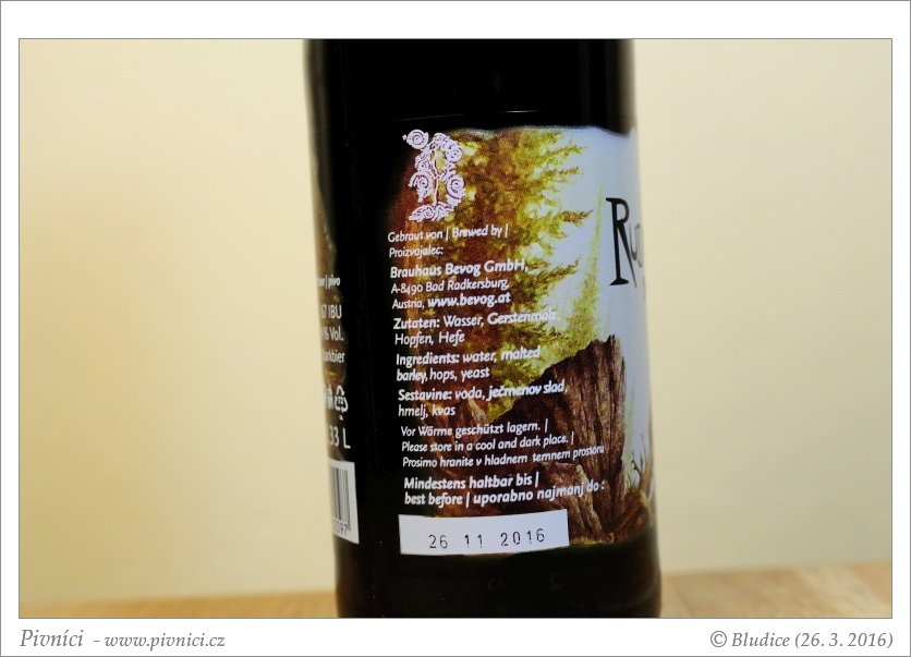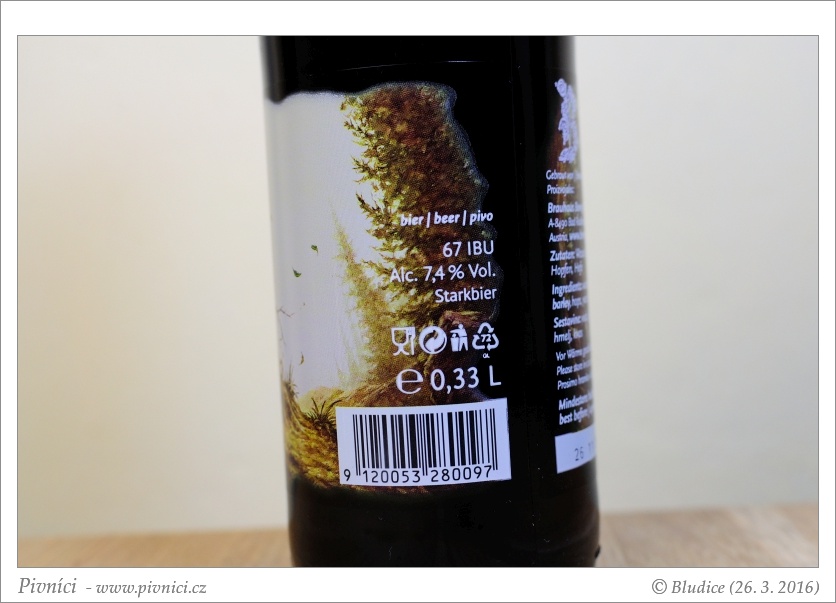 Chutná black IPA, pěkně chmelená, výrazně hořká.Minimální trvanlivost: 26. listopadu 2016